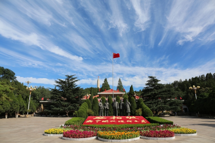 西柏坡纪念馆前的五大书记塑像。 西柏坡纪念馆供图