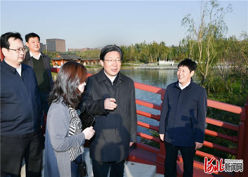 10月17日至18日,省委书记、省人大常委会主任王东峰在雄安新区调研检查。这是王东峰在悦容公园南苑,实地察看公园建设进展情况。河北日报记者赵威摄