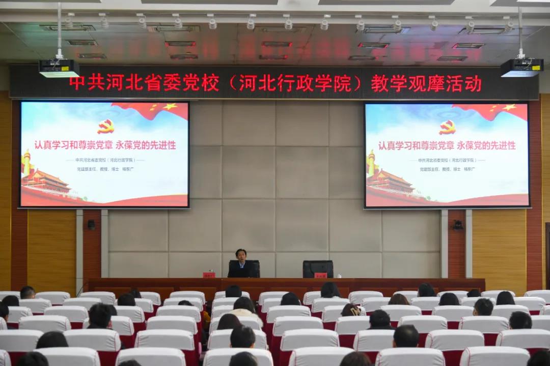 为进一步提高教师执教能力,发挥精品课的示范引领作用,12月15日上午,省委党校(河北行政学院)组织了一场面向全体教研人员的教学观摩活动。全国党校(行政学院)系统第六届精品课奖获得者,省委党校(河北行政学院)党建教研部主任杨东广教授作课程示范教学。省委党校(河北行政学院)教育长李凤瑞主持此次活动。