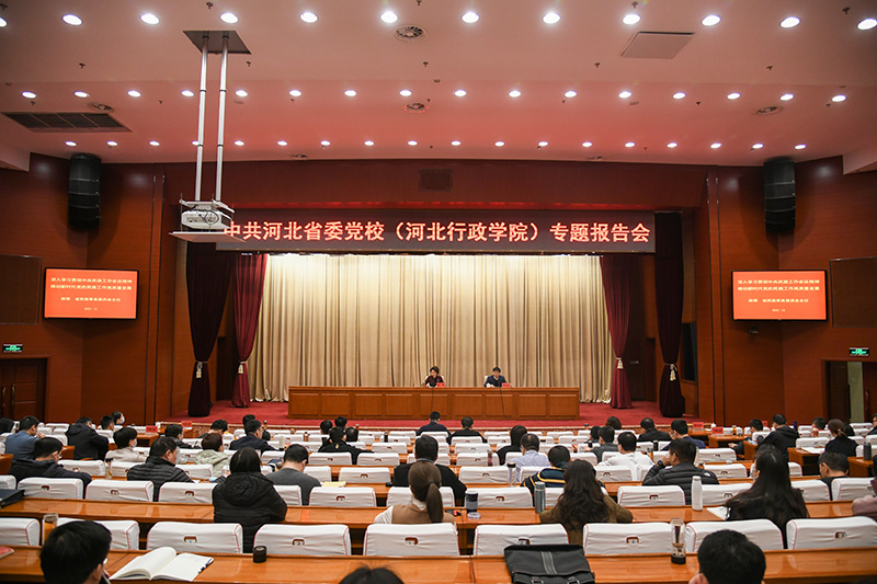 12月23日上午, 组织召开专题报告会。河北省民族事务委员会主任薛寒作了主题为“深入学习贯彻中央民族工作会议精神,推动新时代党的民族工作高质量发展”的专题报告。报告会由省委党校(河北行政学院)教育长李凤瑞主持。