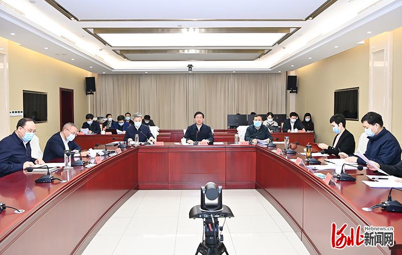 2月16日晚,省委书记、省人大常委会主任王东峰主持召开冬奥工作视频调度会议。这是会议现场。河北日报记者赵威摄