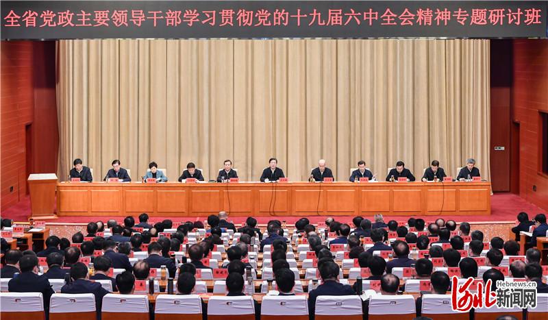 2月28日下午,全省党政主要领导干部学习贯彻党的十九届六中全会精神专题研讨班在省委党校举行交流总结会。这是会议现场。 河北日报记者赵威摄
