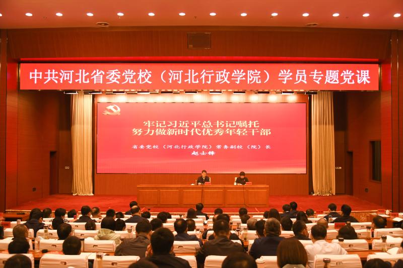 4月8日上午,省委党校(河北行政学院)常务副校(院)长赵士锋以《牢记习近平总书记嘱托,努力做新时代优秀年轻干部》为题为学员讲党课。他强调,要深入学习贯彻习近平总书记在中央党校(国家行政学院)中青年干部培训班开班式上的重要讲话精神,努力成为对党和人民忠诚可靠、堪当时代重任的栋梁之才,踔厉奋发,笃行不怠,为新时代全面建设现代化经济强省、美丽河北贡献自己的力量。