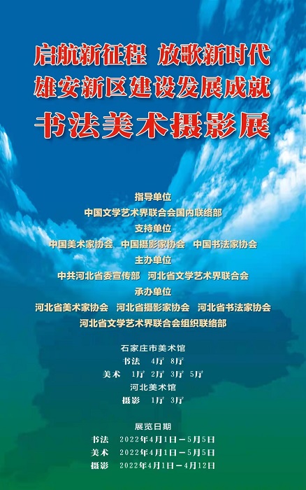 河北艺术网讯(王惠)4月1日上午,由河北省委宣传部、河北省文联主办的“启航新征程·放歌新时代”雄安新区建设发展成就书法美术摄影展在石家庄开展。