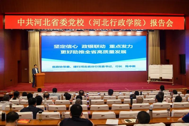 5月21日上午,省政协常委,建行河北省分行党委书记、行长陈中新在省委党校(河北行政学院)作了题为《坚定信心 政银联动 重点发力 更好助推全省高质量发展》的专题报告,分析研判当前宏观形势,解读中央宏观调控政策及河北省高质量发展的主要发力点,介绍建行下一步助力全省发展的工作重点,并对政府充分运用金融力量、在政银联动方面需做好的工作提出了专业性建议。
