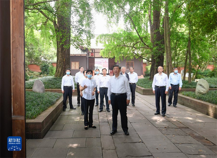6月8日,中共中央总书记、国家主席、中央军委主席习近平在四川考察。这是8日上午,习近平在眉山市三苏祠考察。新华社记者 申宏 摄