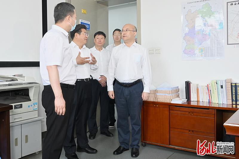 7月5日,省长王正谱在省生态环境厅调研。这是王正谱来到自然生态保护处,了解生物多样性保护等工作情况。河北日报记者孟宇光摄