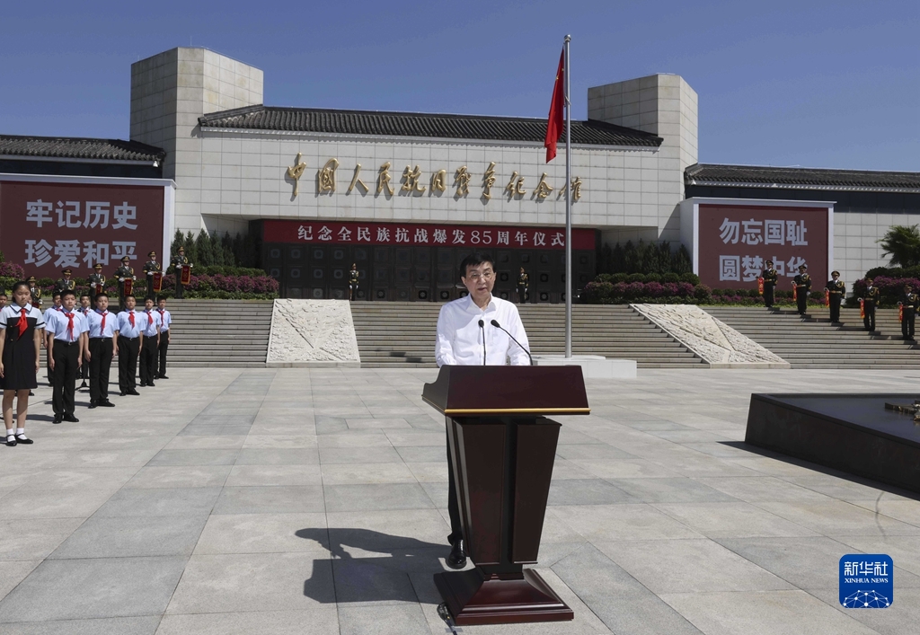 新华社北京7月7日电 纪念全民族抗战爆发85周年仪式7日上午在中国人民抗日战争纪念馆举行。中共中央政治局常委、中央书记处书记王沪宁出席仪式并讲话。