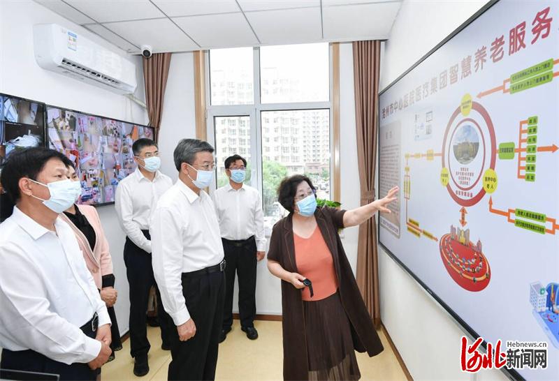近日,省委书记倪岳峰在沧州市调研。这是倪岳峰在福安居家养老日间照料中心,认真了解社区养老工作。 河北日报记者赵海江摄
