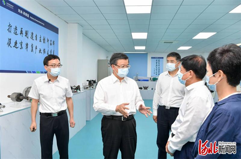 近日,省委书记倪岳峰在沧州市调研。这是倪岳峰在河间市京津冀再制造产业技术研究院考察县域特色产业发展情况。 河北日报记者赵海江摄