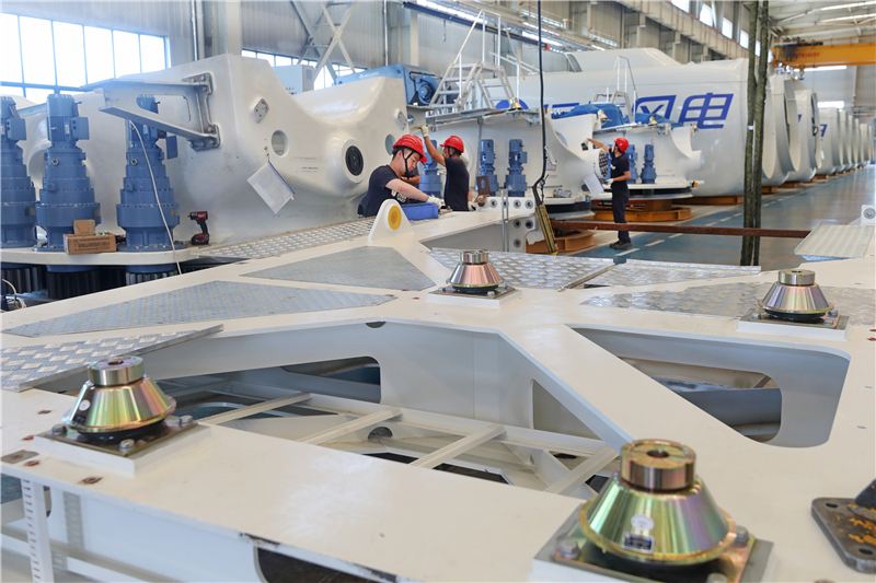7月25日,工人在张北县一家风电设备公司车间工作。
