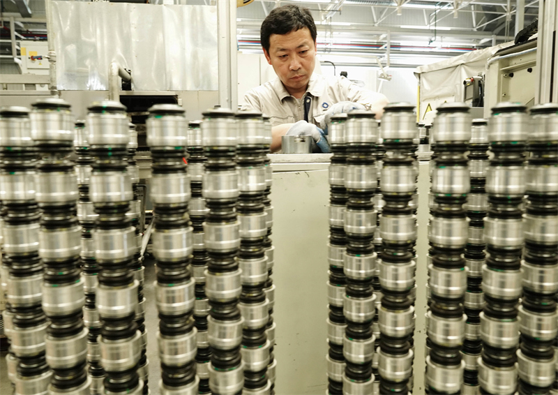 8月3日,工人在秦皇岛经济技术开发区一家汽车配件企业的生产车间工作。