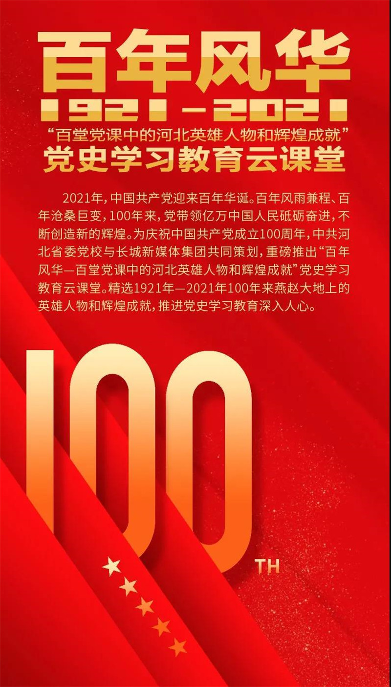 与长城新媒体集团联合主办、共同推出了“百年风华——百堂党课中的河北英雄人物和辉煌成就”党史学习教育云课堂。
