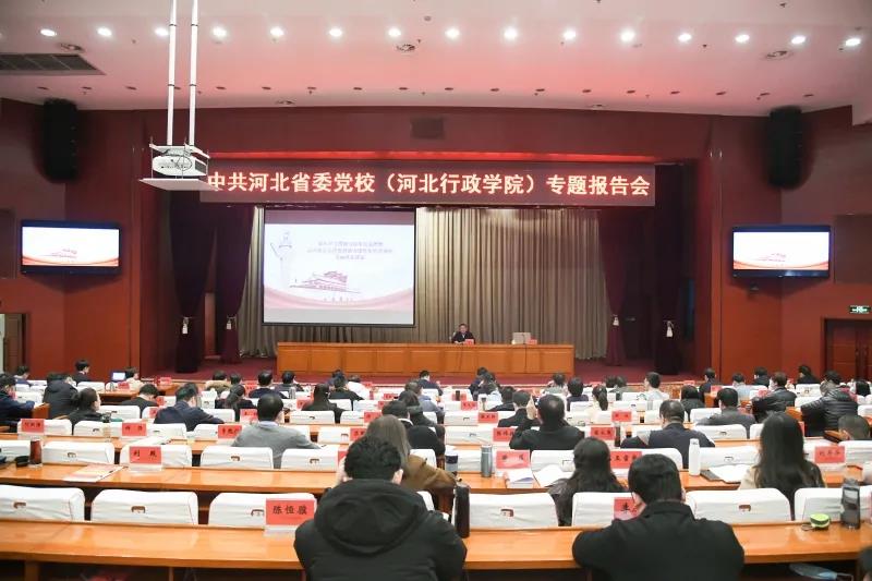 12月16日上午, 组织召开专题报告会。省人民检察院党组书记、检察长丁顺生作了主题为“深入学习贯彻习近平法治思想,以高质量法律监督助力现代化经济强省美丽河北建设”的报告。报告会由省委党校(河北行政学院)常务副校(院)长赵士锋主持。
