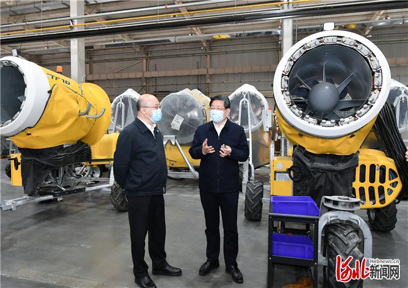 4月16日至17日,省委书记、省人大常委会主任王东峰在张家口市调研检查。省委副书记、省长王正谱参加调研检查。这是王东峰、王正谱在张家口冰雪运动装备产业园,认真察看造雪机等生产情况。 河北日报记者赵威摄