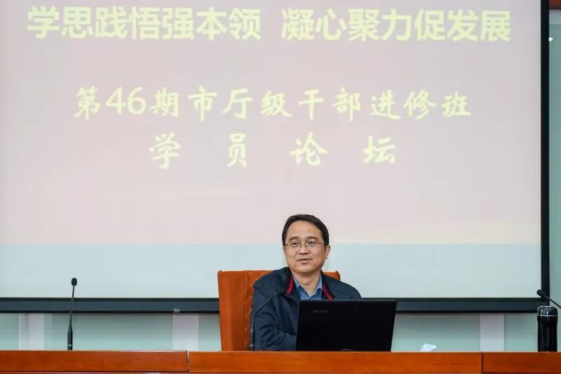 4月28日下午,省委党校(河北行政学院)市厅级干部进修班(第46期)组织开展了以“学思践悟强本领 凝心聚力促发展”为主题的学员论坛活动。学员们结合各自的工作经验和学习体会,作了富于实践性、理论性的交流发言。