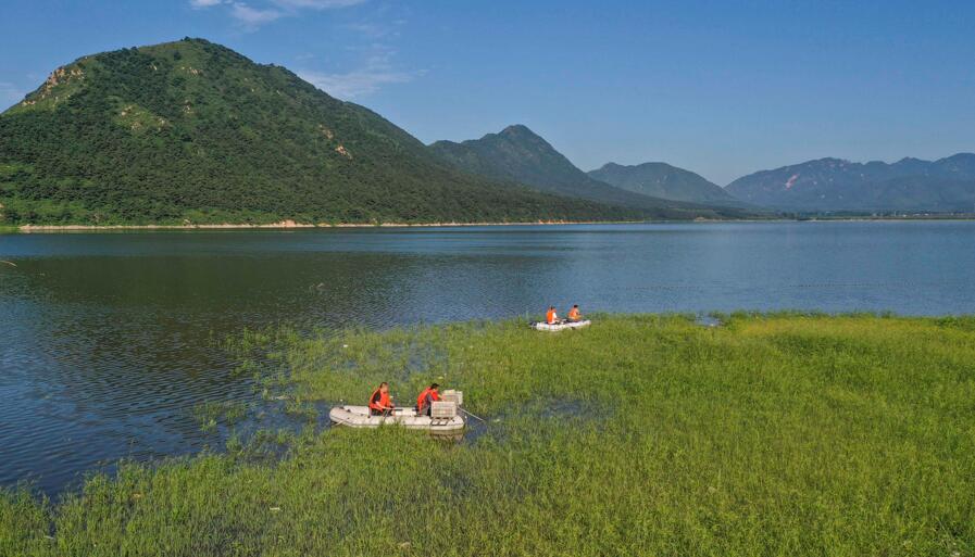 进入雨季以来,河北省遵化市开展水库、湖面、河道环境专项治理工作,组织专业打捞队员和村级志愿者,进行杂物打捞工作,确保雨季河湖水质达标。 新华社发(刘满仓摄)