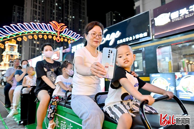 石家庄市火车头步行街,市民在乘坐小火车观光。河北日报记者霍艳恩摄