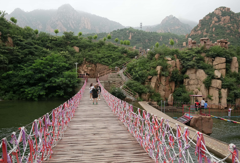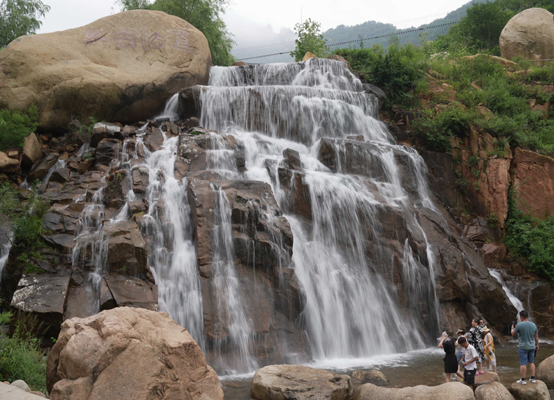 8月7日,游客在秦皇岛市抚宁区冰糖峪景区游览。