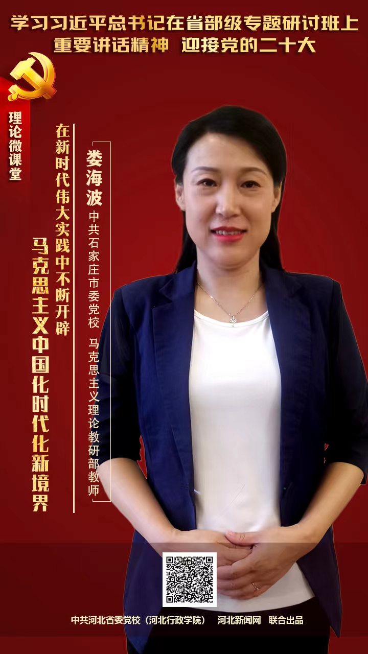 今天推出第四期,石家庄市委党校教师娄海波带来的《在新时代伟大实践中不断开辟马克思主义中国化时代化新境界》。