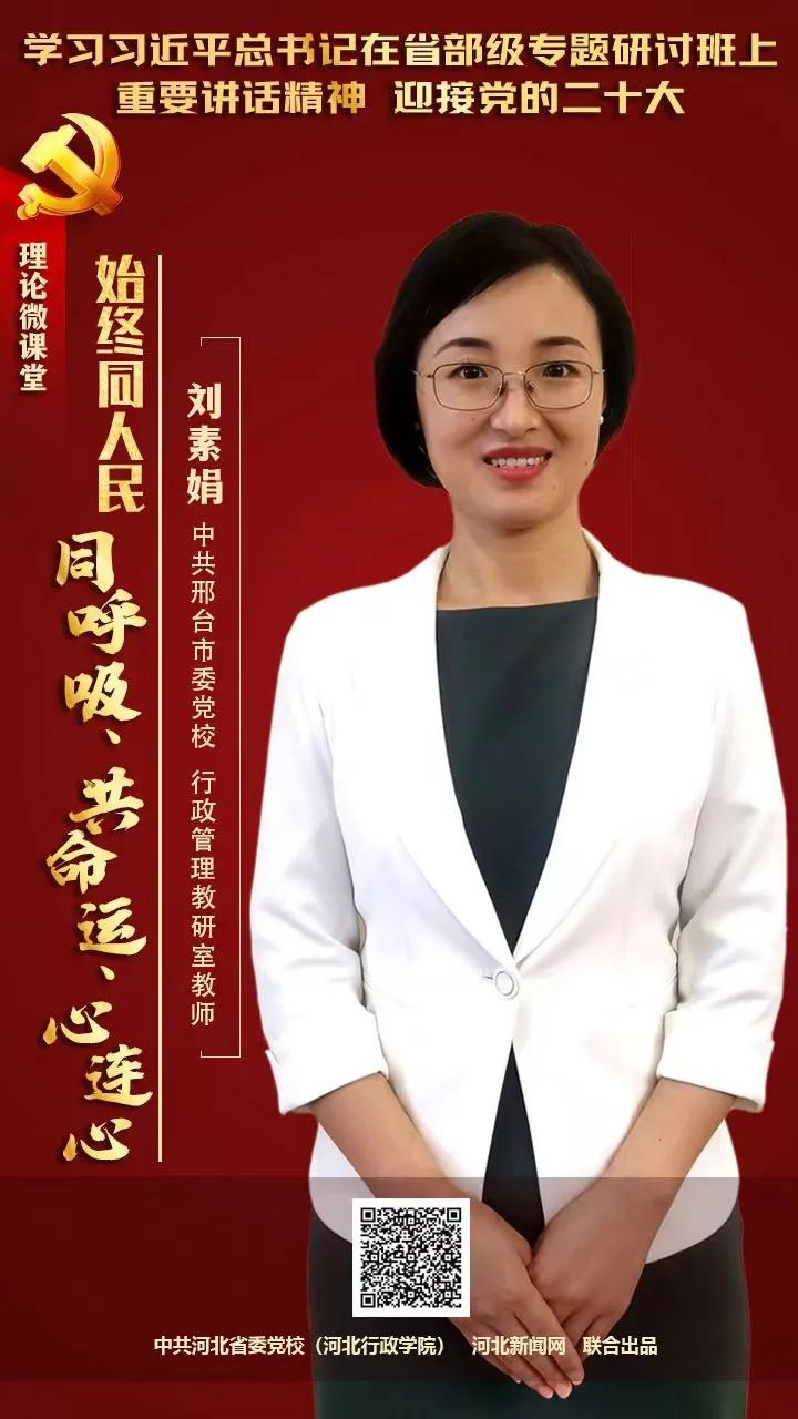 今天推出第二期,邢台市委党校教师刘素娟讲授的《始终同人民同呼吸、共命运、心连心》。